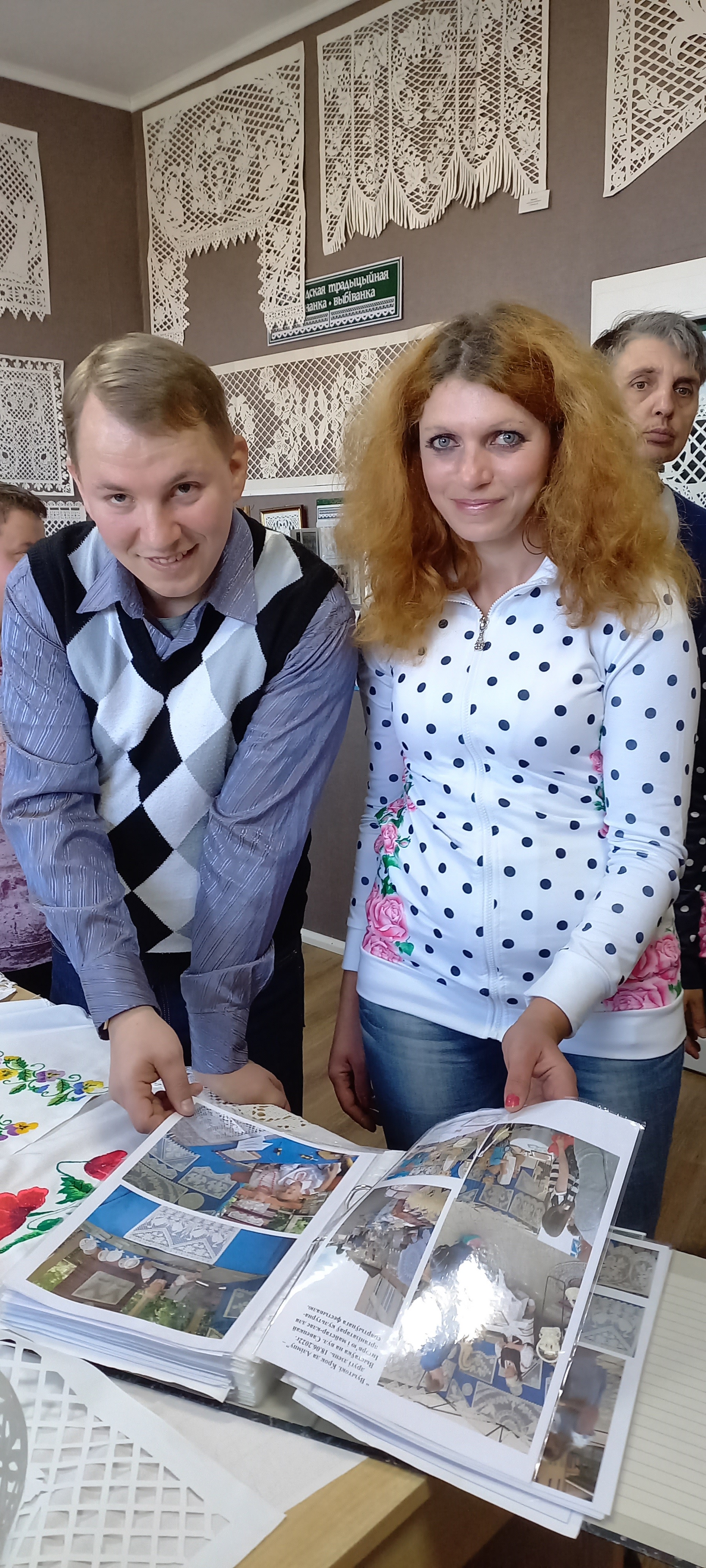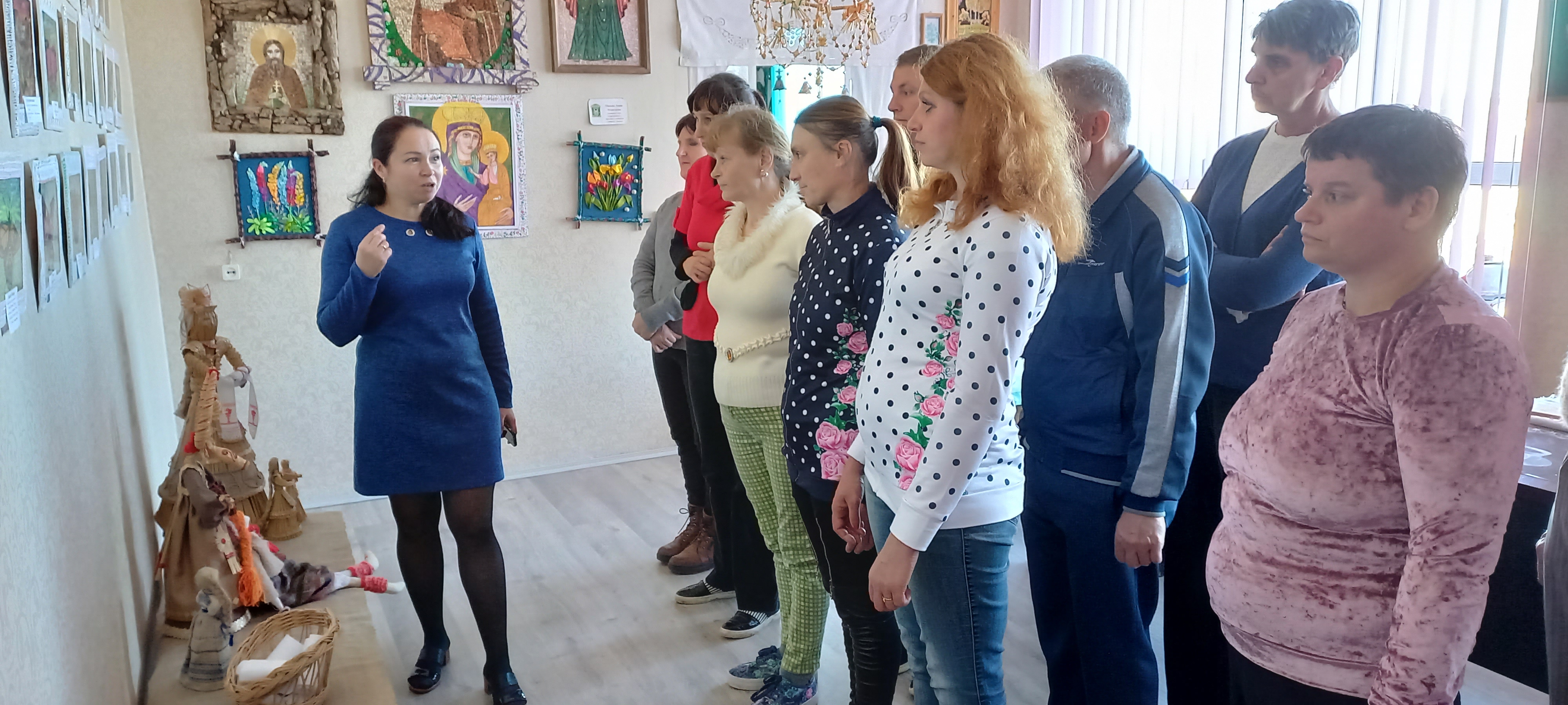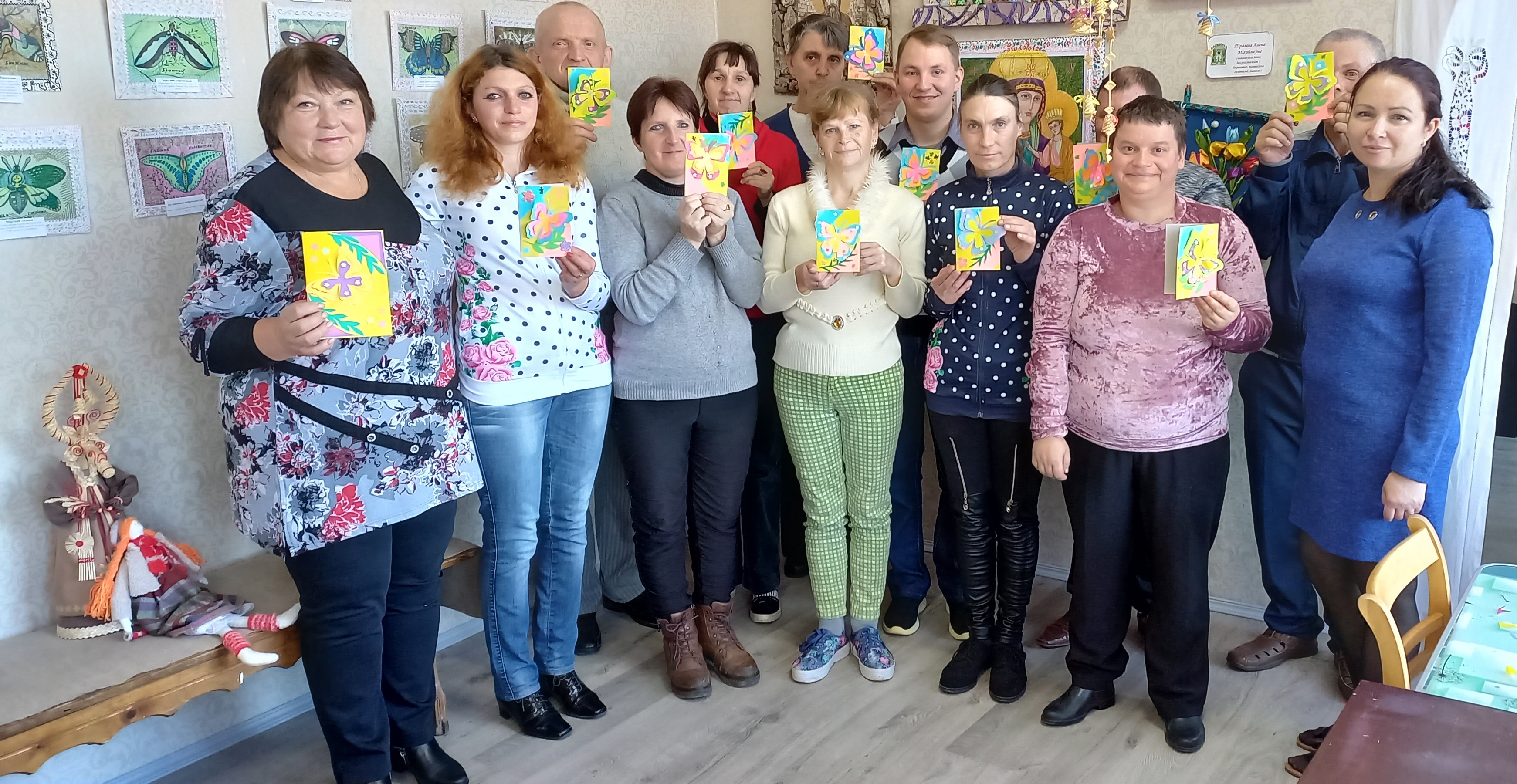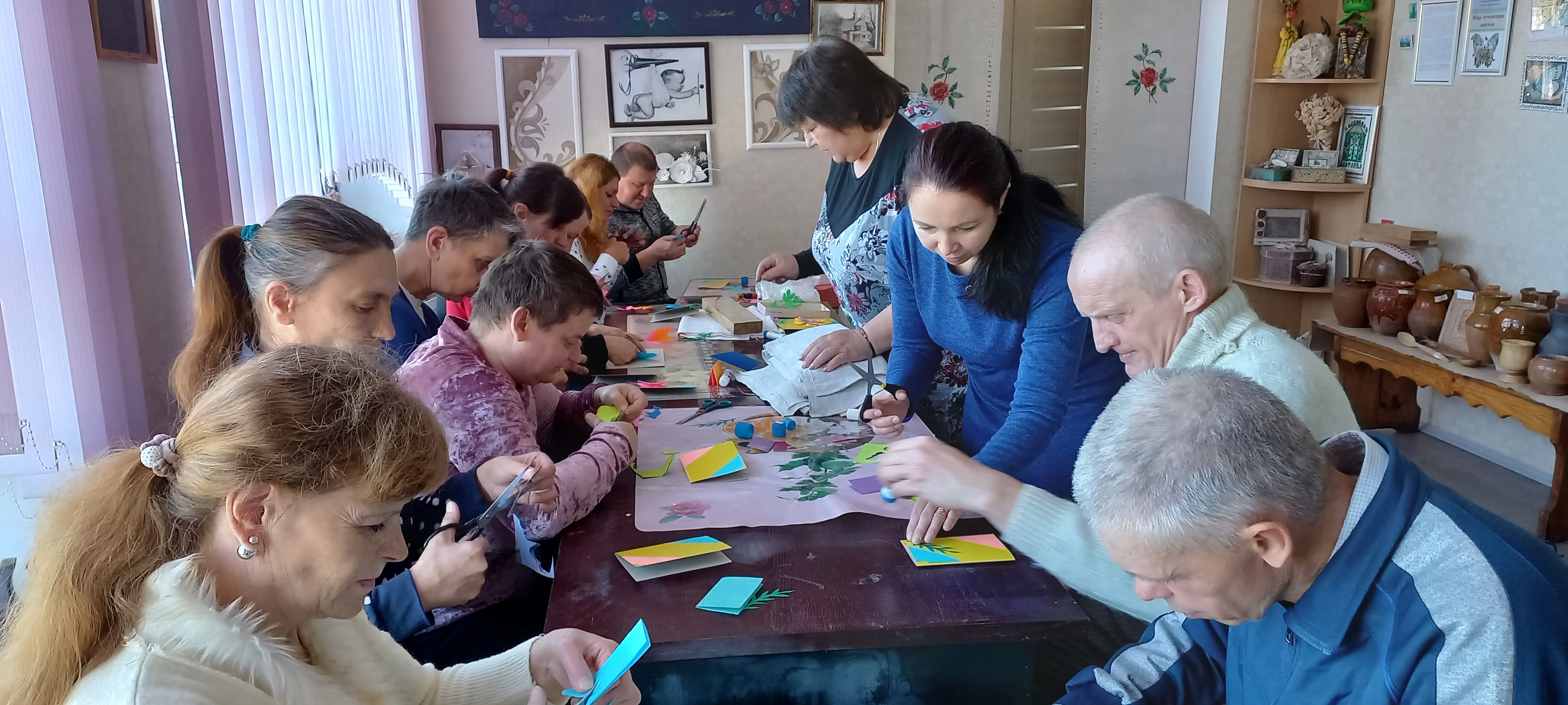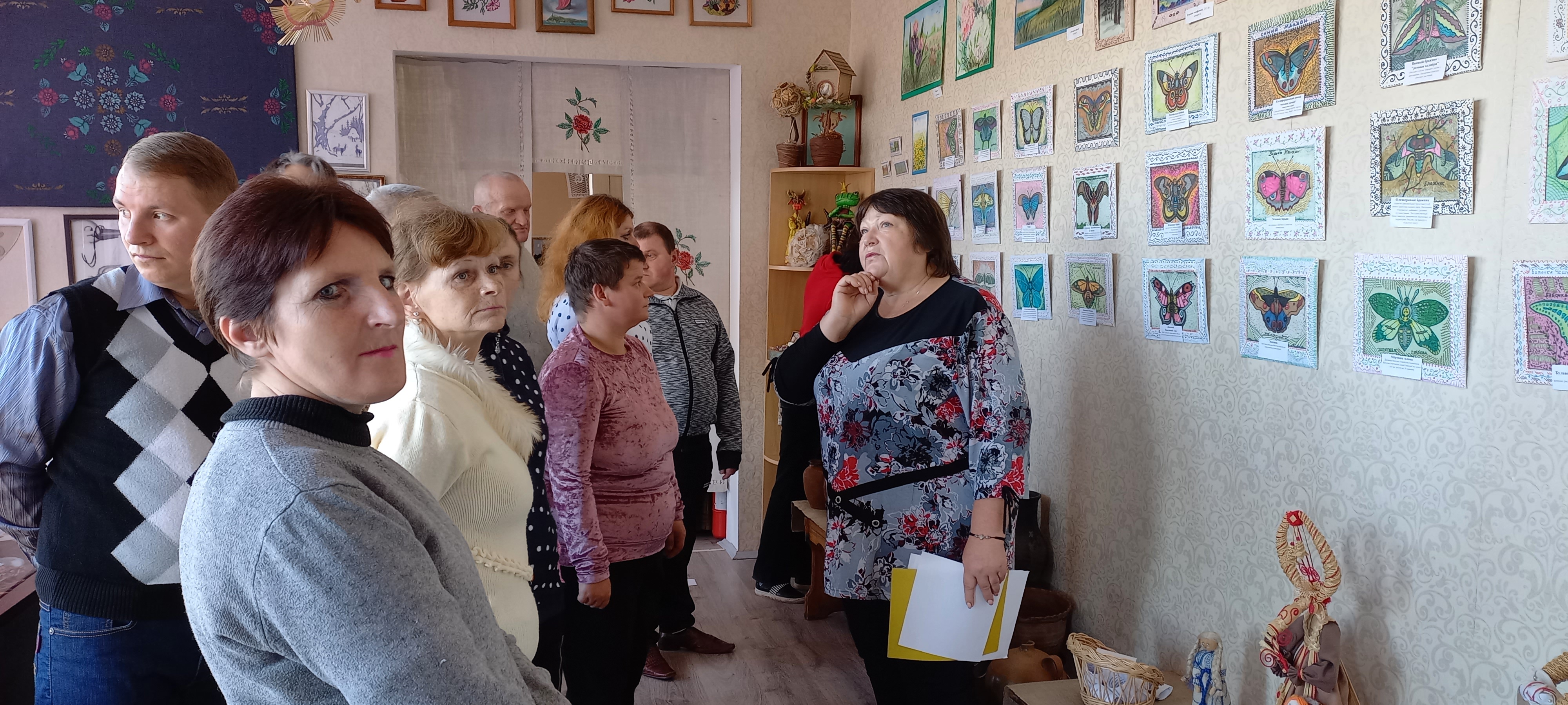 7 октября 2022 года получатели социальных услуг ГУСО «Новогрудский психоневрологический дом-интернат для престарелых и инвалидов» посетили выставку живописных картин участницы народного клуба мастеров «Каляровая альтанка» Елены Пирязевой «Мир летающих цветов» и салон-мастерскую «Выбiваначка» Новогрудского районного центра ремесел.