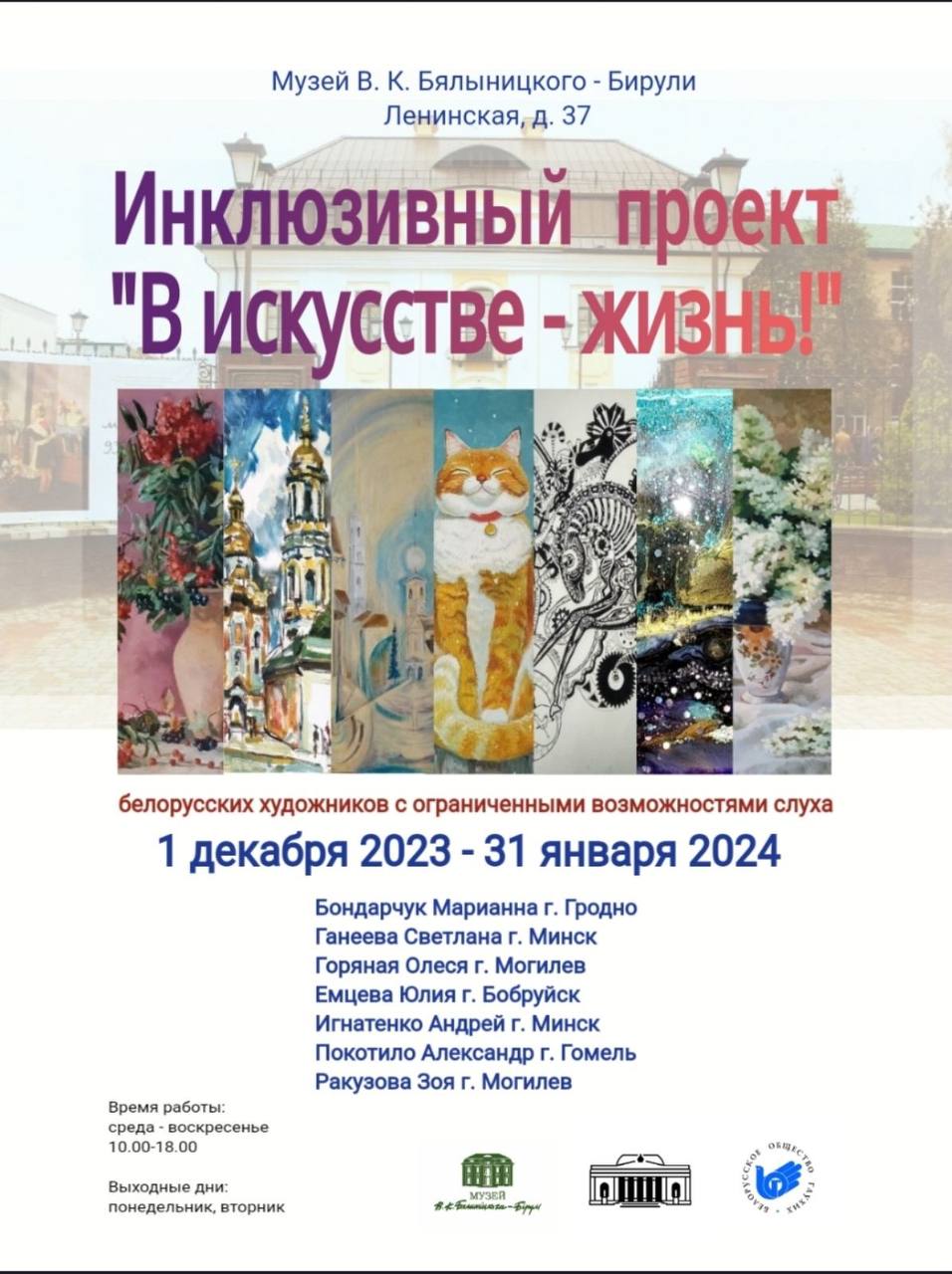 Торжественная церемония открытия инклюзивного проекта «В искусстве – жизнь!» состоится 1 декабря 2023 года, начало в 15.00.