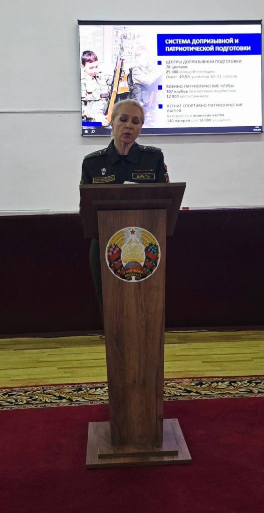 С основным докладом на тему «Оборонительная мощь белорусской армии и патриотизм в современных условиях» выступила старший прапорщик воинской части 75158 Царь Татьяна Николаевна.