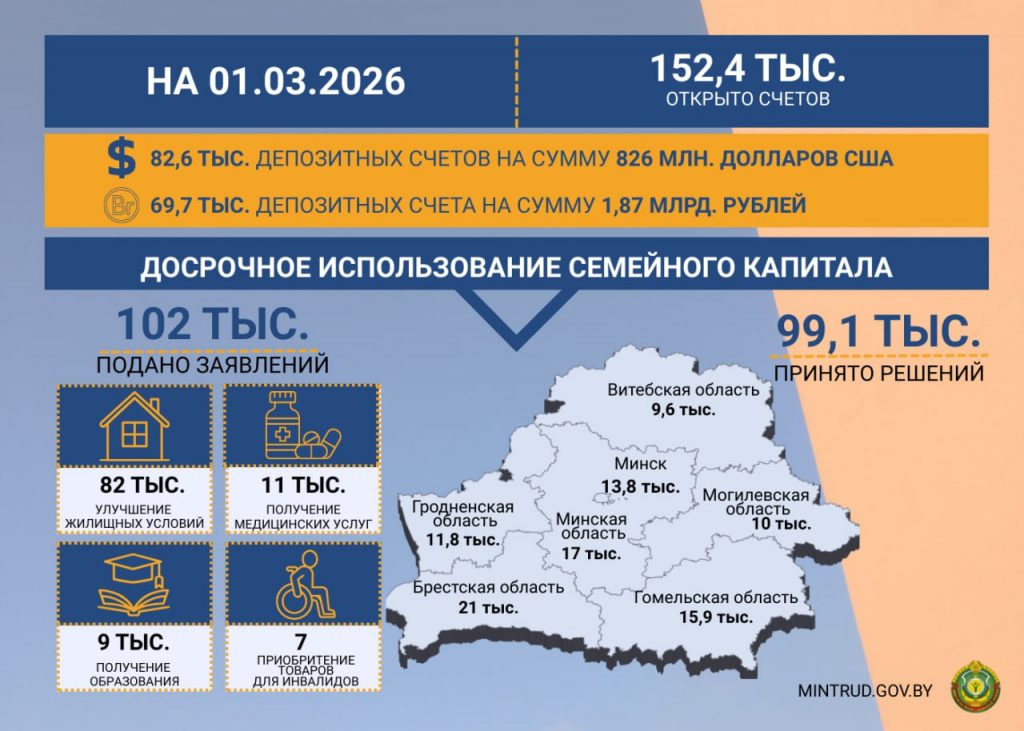 ✍️ Для многодетных семей открыто 152,4 тыс. депозитных счетов «Семейный капитал»: