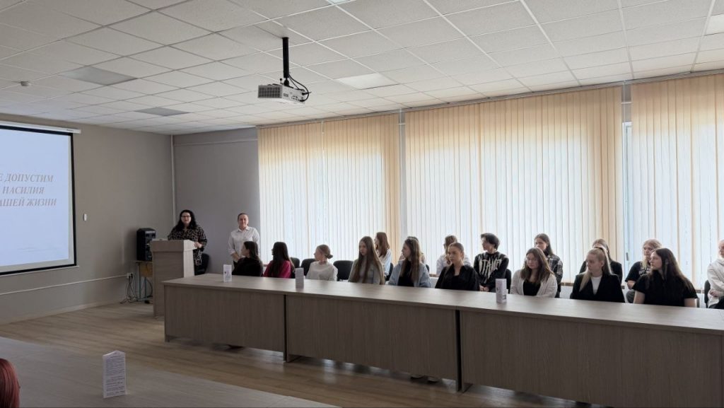 В ходе мероприятия студентам была предоставлена информация о видах и причинах насилия в семье, цикличном характере домашнего насилия, ярко выраженных признаках насилия. В формате открытого диалога с учащимися колледжа были озвучены мифы о насилии, куда можно обратиться за помощью, если в семье имеет место насилие, про меры ответственности, а также о функционировании «кризисной» комнаты. В конце встречи студентам были розданы информационные буклеты.