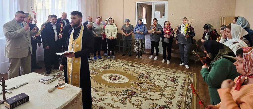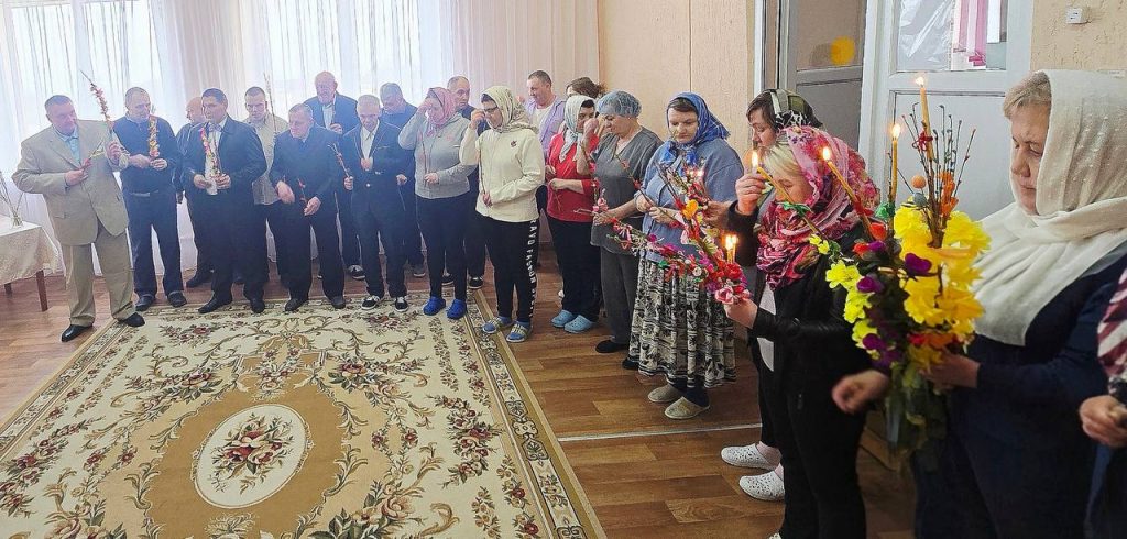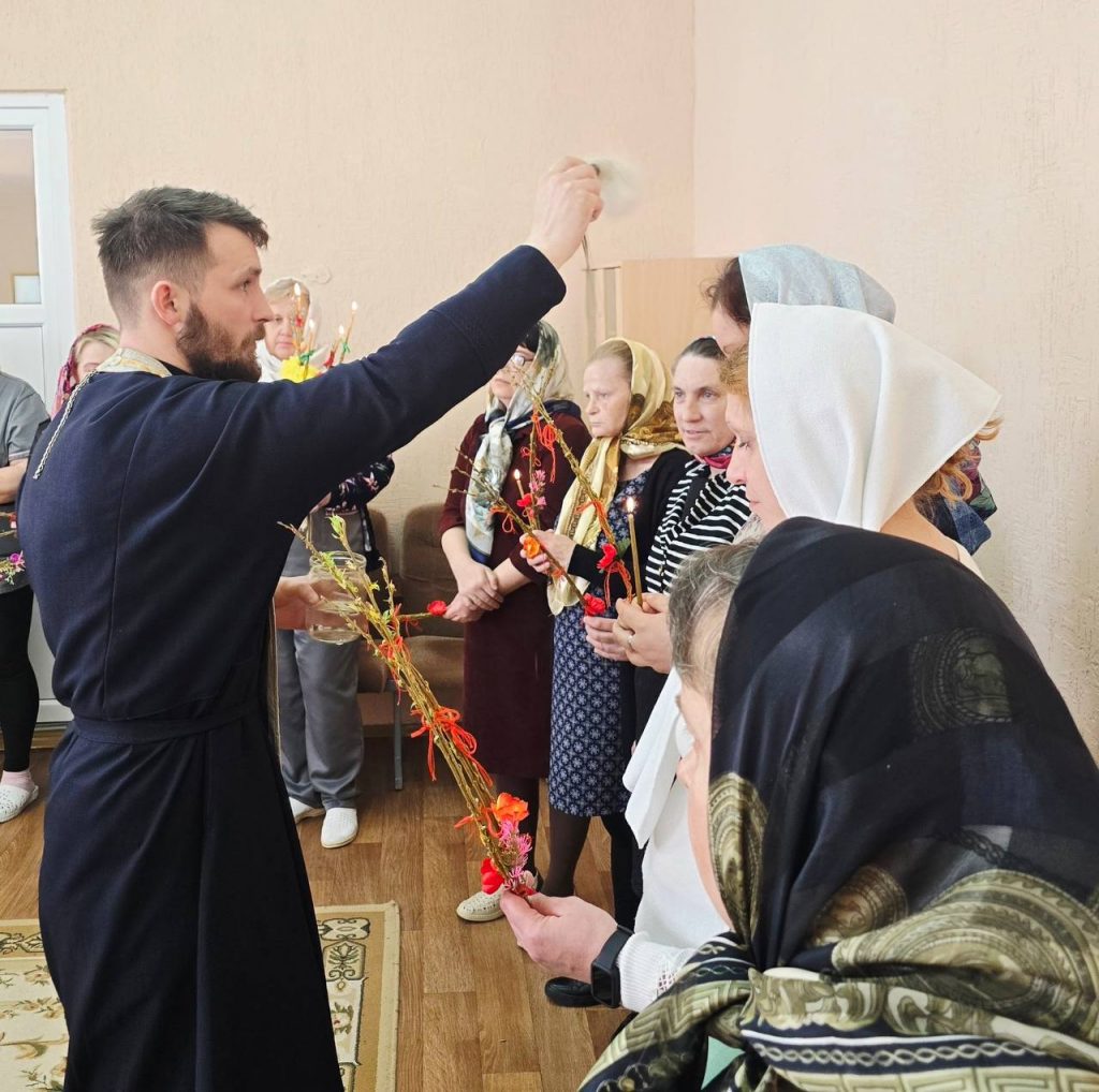 В стенах социального пансионата «Аксамит» сегодня царила особенная атмосфера. Отец Евгений совершил праздничный молебен и освятил пушистые вербочки для всех желающих — и для наших получателей социальных услуг, и для сотрудников. Эти весенние веточки стали настоящим символом тепла и грядущего праздника. Отец Евгений нашел доброе слово для каждого, подарив нам частичку духовной радости и спокойствия. Пусть этот свет останется в наших сердцах!