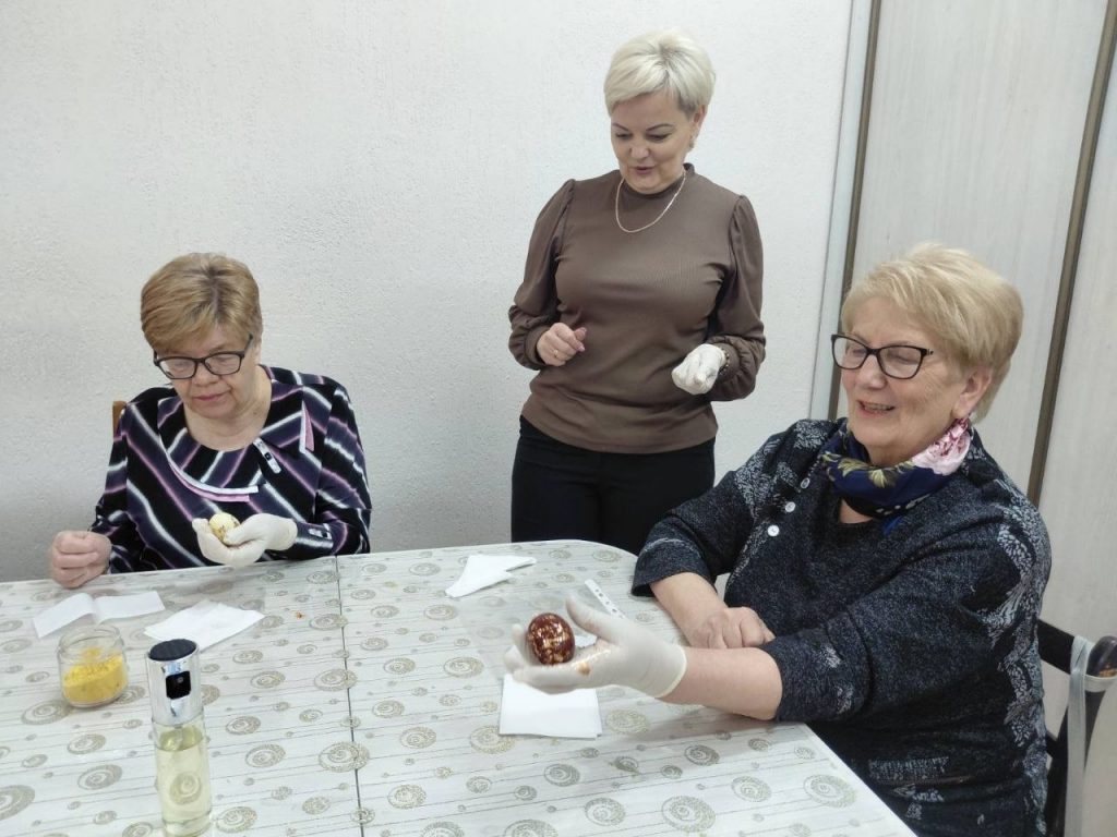 В преддверии светлого праздника Пасхи в рамках кружка «Радуга творчества» для получателей социальных услуг отделения поддержки активного долголетия в условиях дневного пребывания и реабилитации, абилитации инвалидов ГУ «ТЦСОН Новогрудского района» прошло необычное и яркое событие. Пожилые люди собрались вместе, чтобы освоить как старинные, так и современные техники декорирования пасхальных яиц.